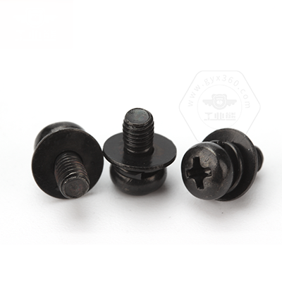 • 碳鋼4.8級黑色鋅鎳合金(48/360h)十字槽盤頭帶平彈墊組合螺釘GB9074.4N